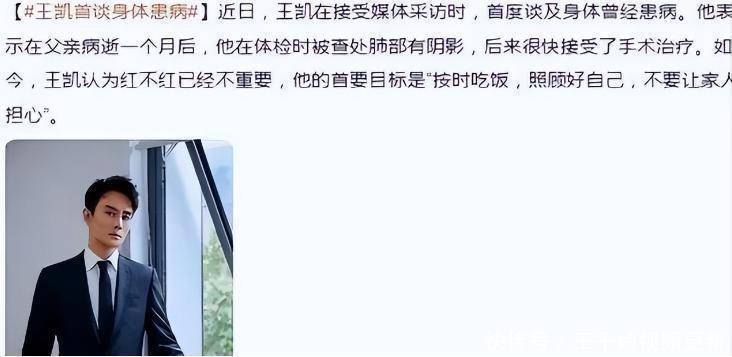 然而,更加不幸的是,父亲去世后不久,王凯在一次体检中发现了肺部问题,必须接受手术。手术虽成功,但他必须长时间休养,不能过度劳累。这也让他不得不放慢工作节奏,彻底改变了自己的人生步伐。
